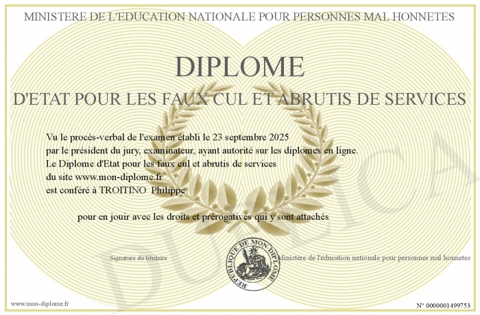 Envoyez par email votre Diplôme d'Etat pour les faux cul et abrutis de services personalisé