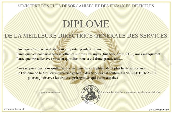 Envoyez par email votre Diplôme de la Meilleure directrice générale des Services personalisé