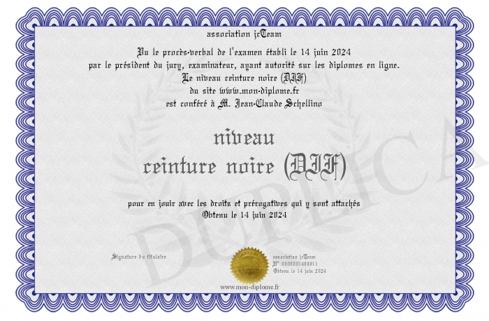 Envoyez par email votre niveau ceinture noire (DIF) personalisé