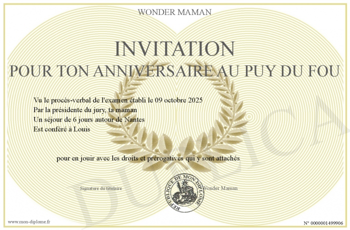 Envoyez par email votre Invitation pour ton anniversaire au Puy du Fou personalisé