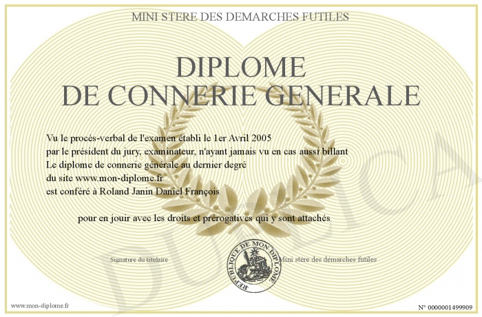 Envoyez par email votre Diplôme de connerie générale personalisé