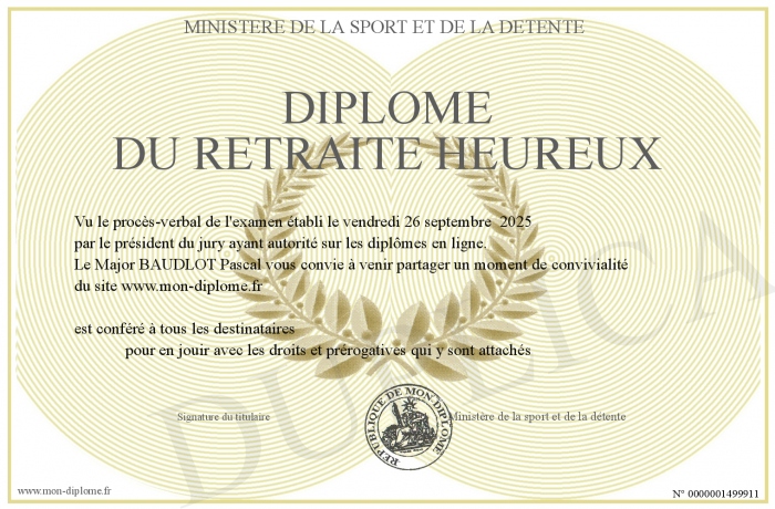 Envoyez par email votre Diplôme du retraité heureux personalisé