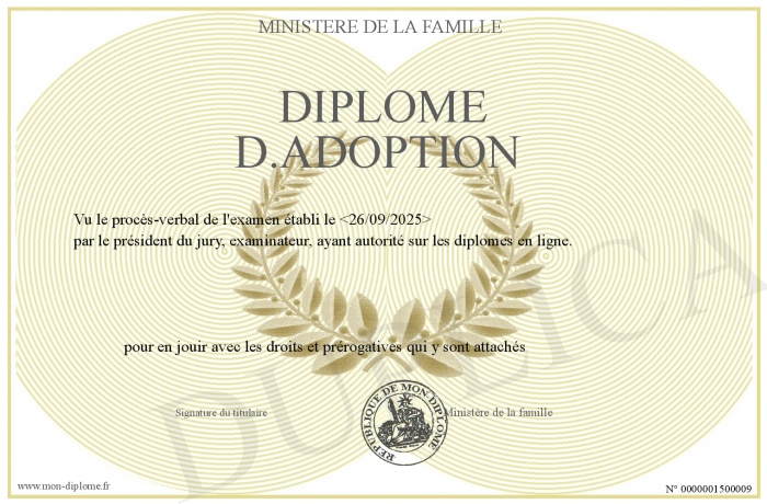 Envoyez par email votre Diplôme d.adoption personalisé