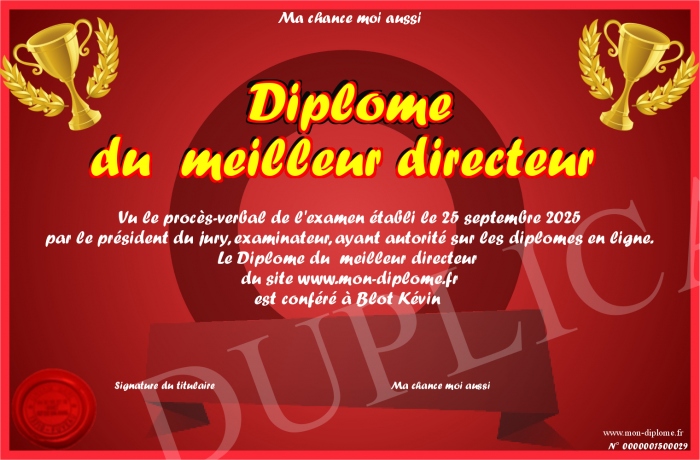 Envoyez par email votre Diplôme du meilleur directeur personalisé