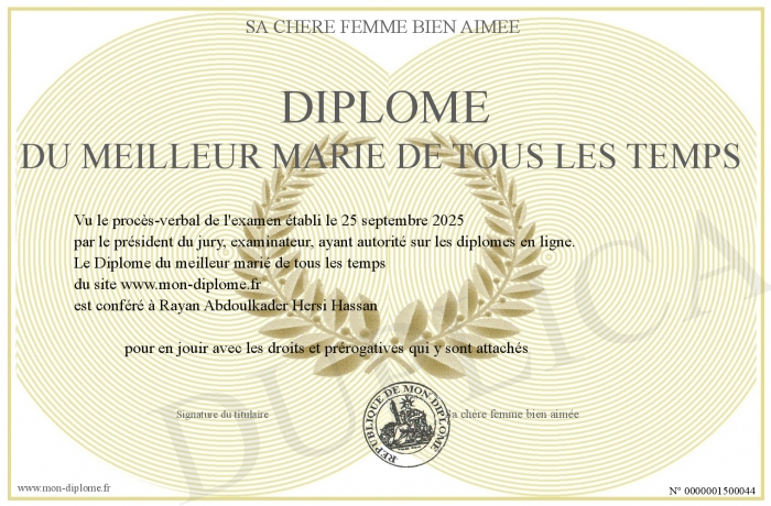 Envoyez par email votre Diplôme du meilleur marié de tous les temps personalisé