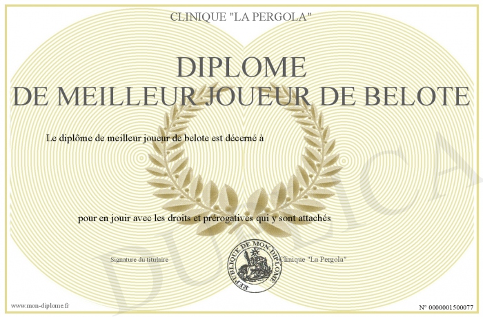 Envoyez par email votre Diplôme de meilleur joueur de belote personalisé