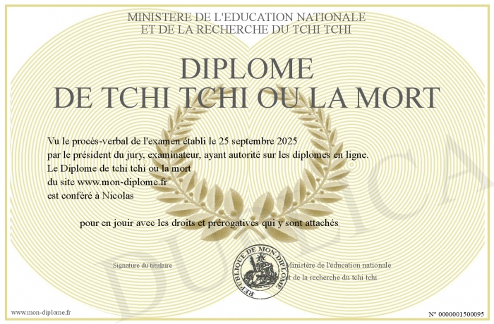 Envoyez par email votre Diplôme de tchi tchi ou la mort personalisé