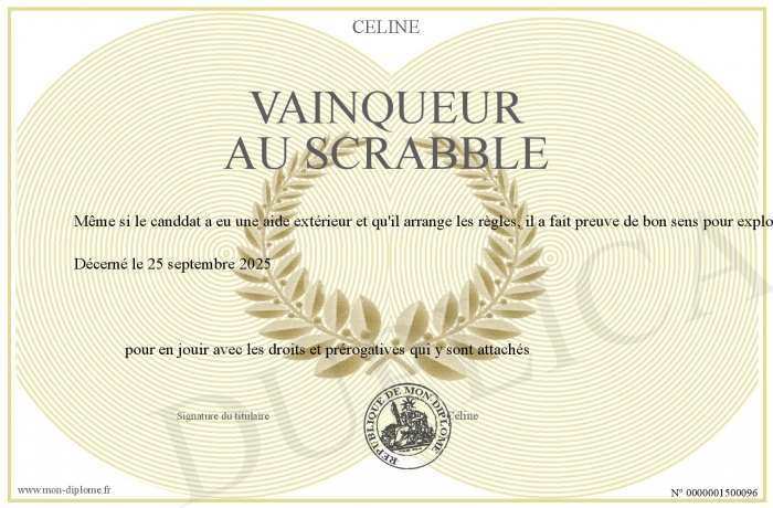 Envoyez par email votre Vainqueur au Scrabble personalisé