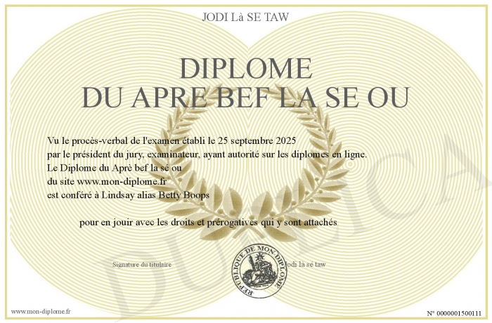 Envoyez par email votre Diplôme du Aprè bef la sé ou personalisé