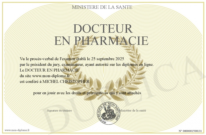Envoyez par email votre DOCTEUR EN PHARMACIE personalisé