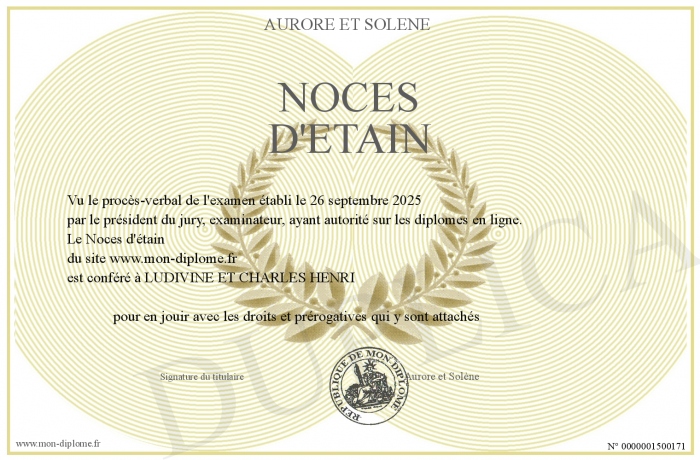 Envoyez par email votre Noces d'étain personalisé