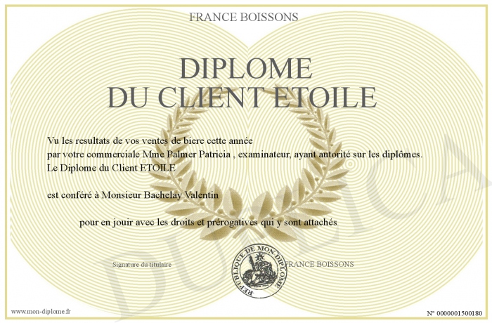 Envoyez par email votre Diplôme du Client ETOILE personalisé