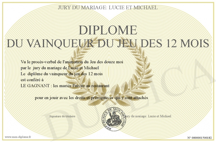 Envoyez par email votre Diplôme du vainqueur du jeu des 12 mois personalisé