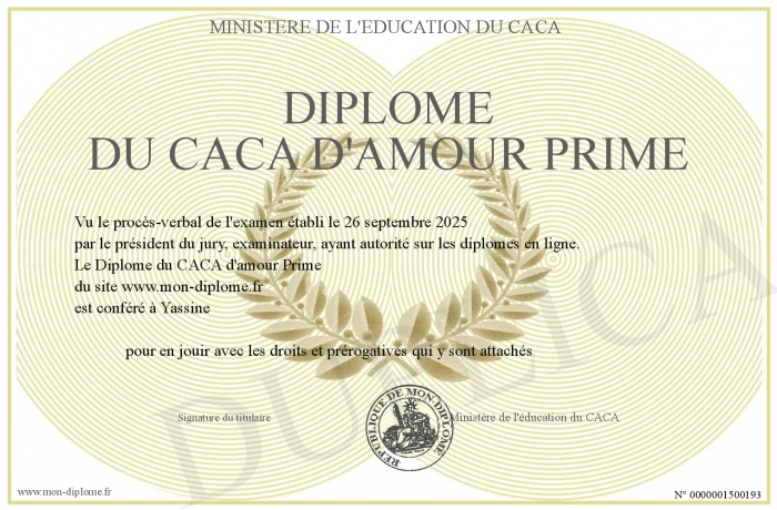 Envoyez par email votre Diplôme du CACA d'amour Prime personalisé