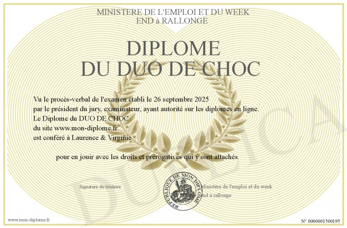 Envoyez par email votre Diplôme du DUO DE CHOC personalisé