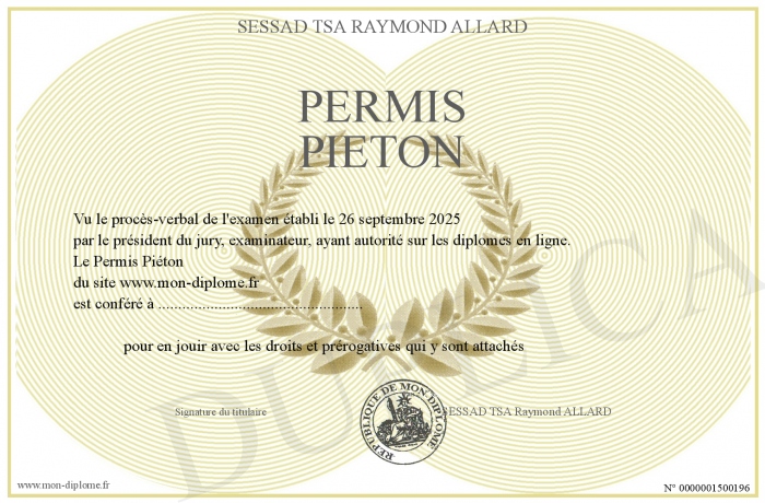 Envoyez par email votre Permis Piéton personalisé