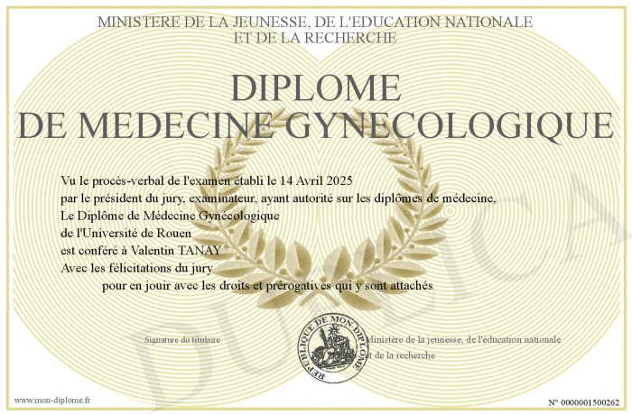 Envoyez par email votre Diplome de médecine gynécologique personalisé
