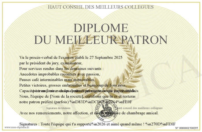 Envoyez par email votre Diplôme du Meilleur Patron personalisé