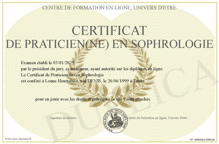 Envoyez par email votre Certificat de Praticien(ne) en Sophrologie personalisé