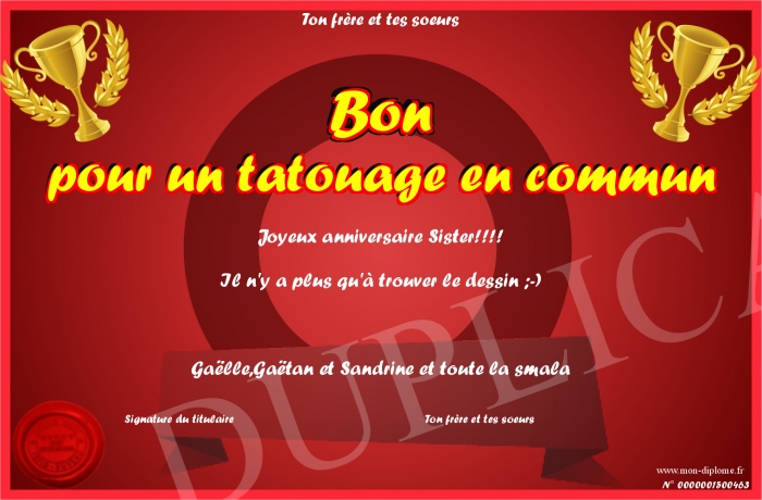 Envoyez par email votre Bon pour un tatouage en commun personalisé