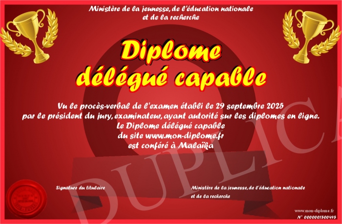 Envoyez par email votre Diplôme délégué capable personalisé