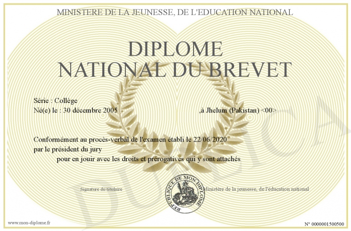 Envoyez par email votre Diplôme national du brevet personalisé