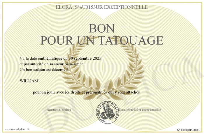 Envoyez par email votre BON POUR UN TATOUAGE personalisé
