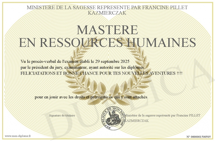 Envoyez par email votre Mastère en Ressources Humaines personalisé