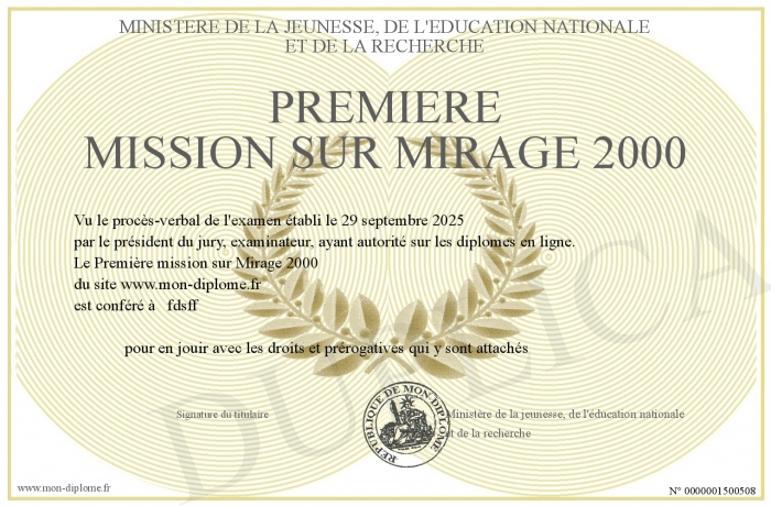 Envoyez par email votre Première mission sur Mirage 2000 personalisé
