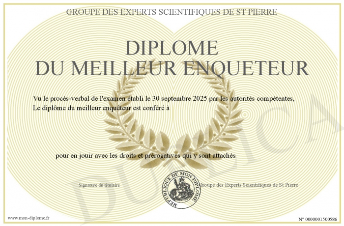 Envoyez par email votre Diplôme du meilleur enqueteur personalisé