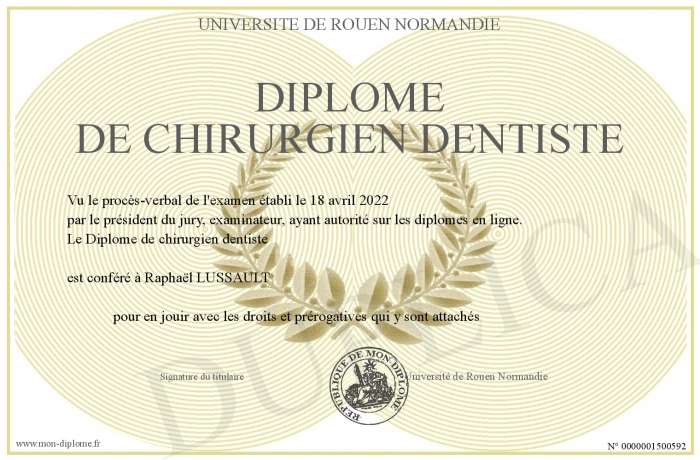 Envoyez par email votre Diplôme de chirurgien dentiste personalisé