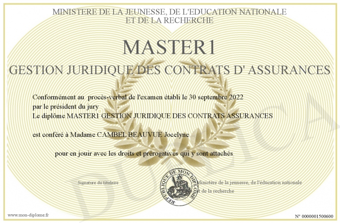 Envoyez par email votre Master1 Gestion Juridique des contrats d' Assurances personalisé