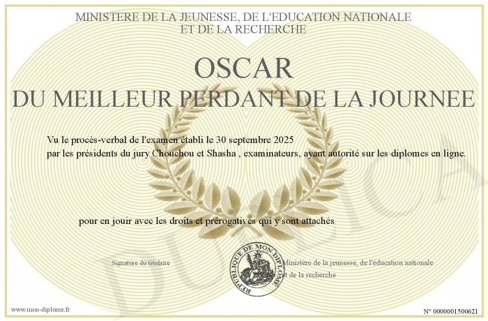 Envoyez par email votre oscar du meilleur perdant de la journée personalisé