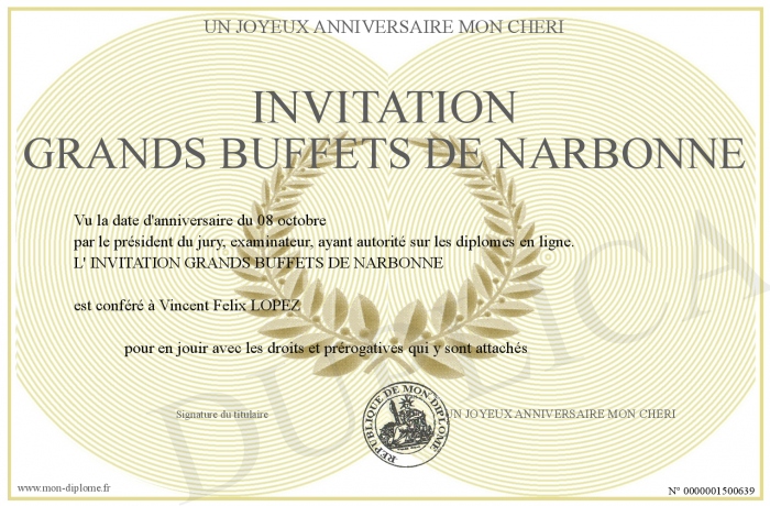 Envoyez par email votre INVITATION GRANDS BUFFETS DE NARBONNE personalisé