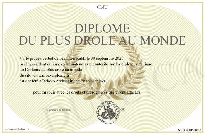 Envoyez par email votre Diplôme du plus drôle au monde personalisé