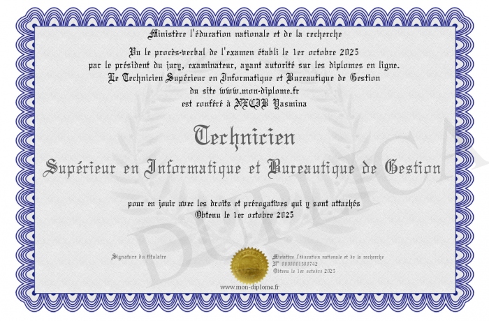 Envoyez par email votre Technicien Supérieur en Informatique et Bureautique de Gestion personalisé