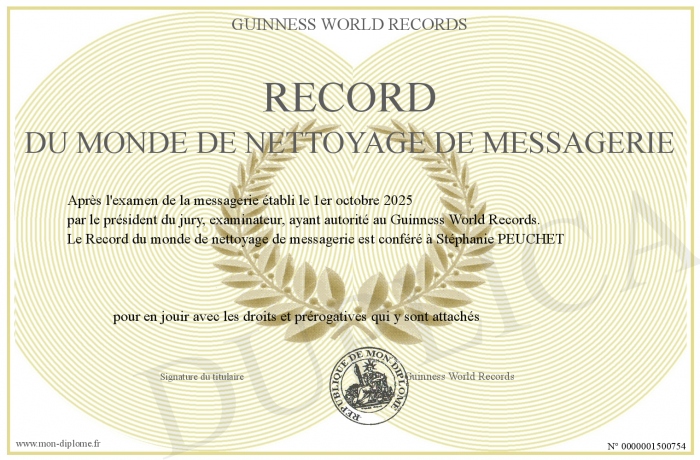 Envoyez par email votre Record du monde de nettoyage de messagerie personalisé
