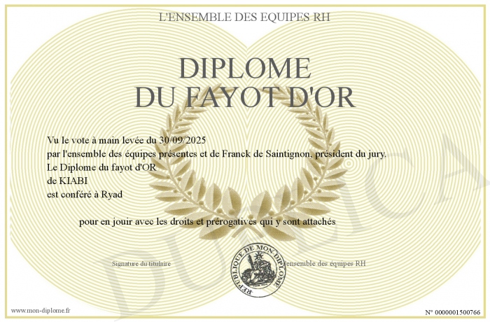 Envoyez par email votre Diplôme du fayot d'OR personalisé