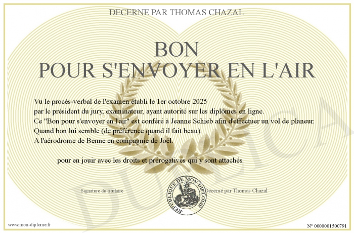 Envoyez par email votre Bon pour s'envoyer en l'air personalisé