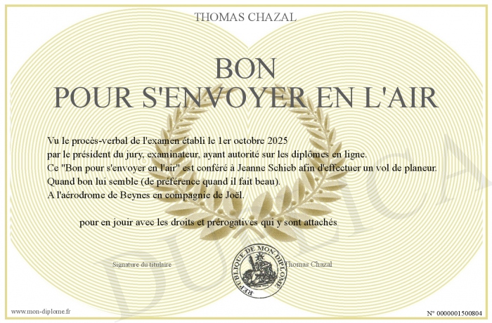 Envoyez par email votre Bon pour s'envoyer en l'air personalisé