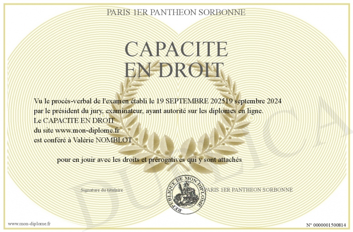 Envoyez par email votre CAPACITE EN DROIT personalisé