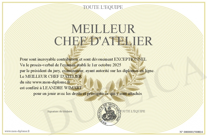 Envoyez par email votre MEILLEUR CHEF D'ATELIER personalisé