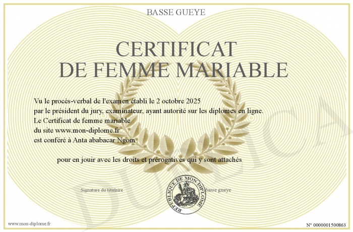 Envoyez par email votre Certificat de femme mariable personalisé