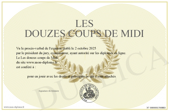 Envoyez par email votre Les douzes coups de Midi personalisé