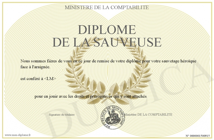 Envoyez par email votre DIPLOME DE LA SAUVEUSE personalisé