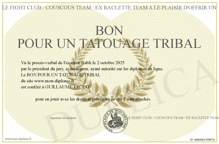 Envoyez par email votre BON POUR UN TATOUAGE TRIBAL personalisé
