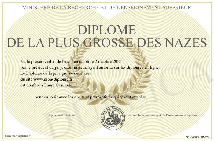 Envoyez par email votre Diplôme de la plus grosse des nazes personalisé