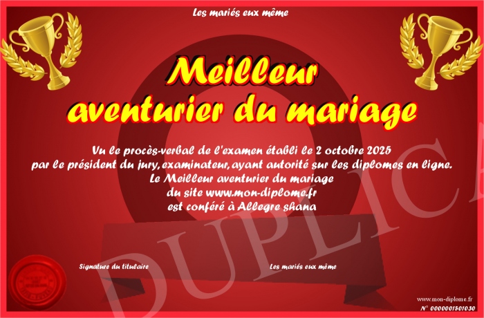Envoyez par email votre Meilleur aventurier du mariage personalisé