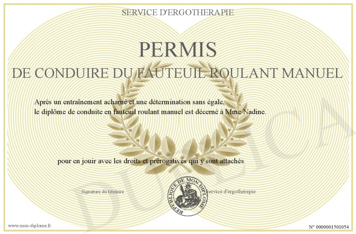 Envoyez par email votre Permis de conduire du Fauteuil roulant manuel personalisé