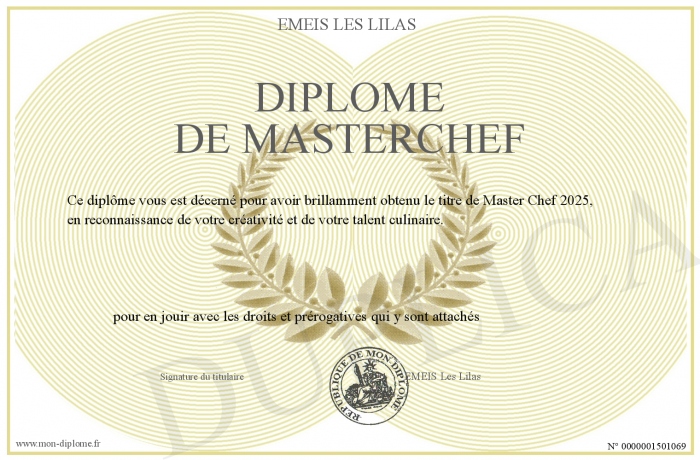Envoyez par email votre Diplôme de masterchef personalisé
